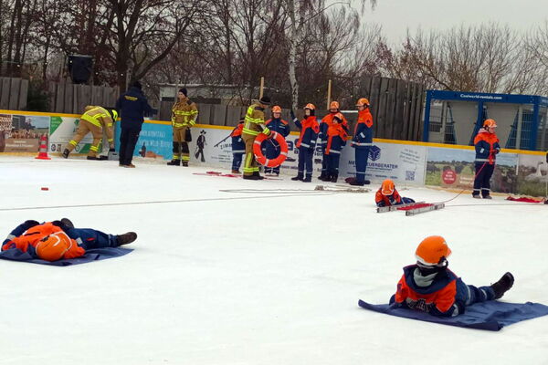 Eisrettungstraining der FFW Kremmen auf unserer Eisbahn