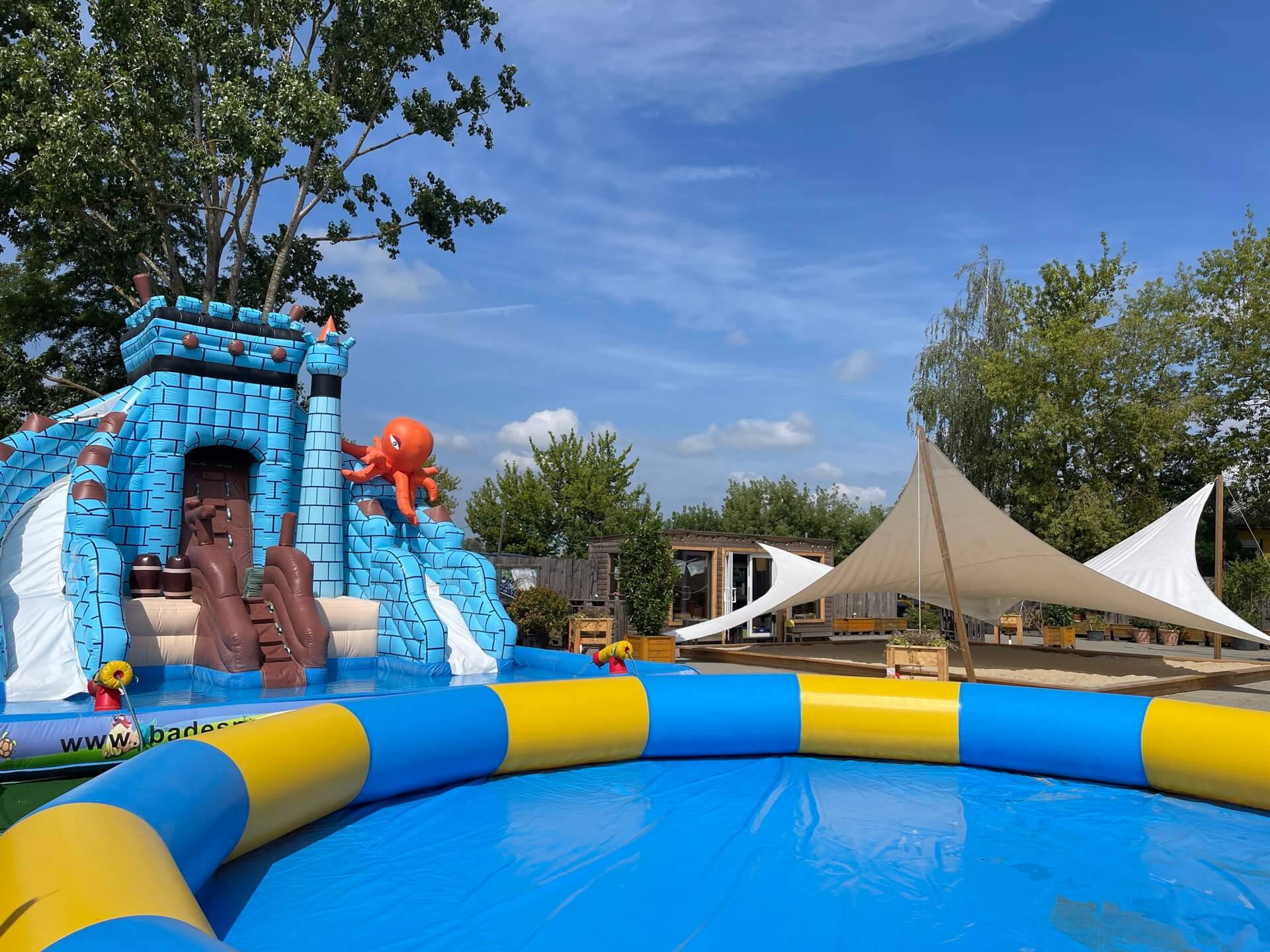 Im Sommer laden wir zum Planschen und zum Badespaß auf unserer Riesen-Wasserrutsche auf der Sonnenterrase am Restaurant Landwirt. Hier erwartet unsere kleinen Gäste ein ganz besonderes Vergnügen. Mit unserem großen Planschbecken und der aufregenden Riesen-Wasserrutsche wird jeder Sommertag zu einem unvergesslichen Erlebnis.